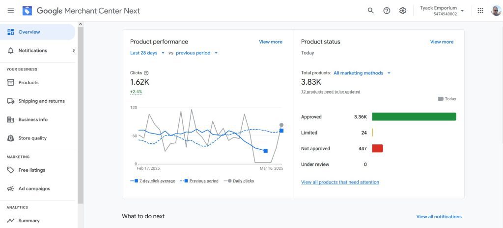 Following these corrections, the account was reviewed in collaboration with a Google representative. Once all compliance requirements were met, a new review request was submitted. After a review period of more than three days, the Merchant Center account was successfully reinstated, enabling the client to resume product advertising.